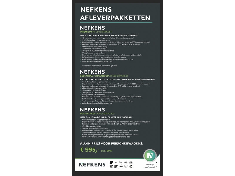 • Beschikbare afleverpakketten: Nefkens Premium Bedrijfswagens (inbegrepen à € 995 ex BTW)
