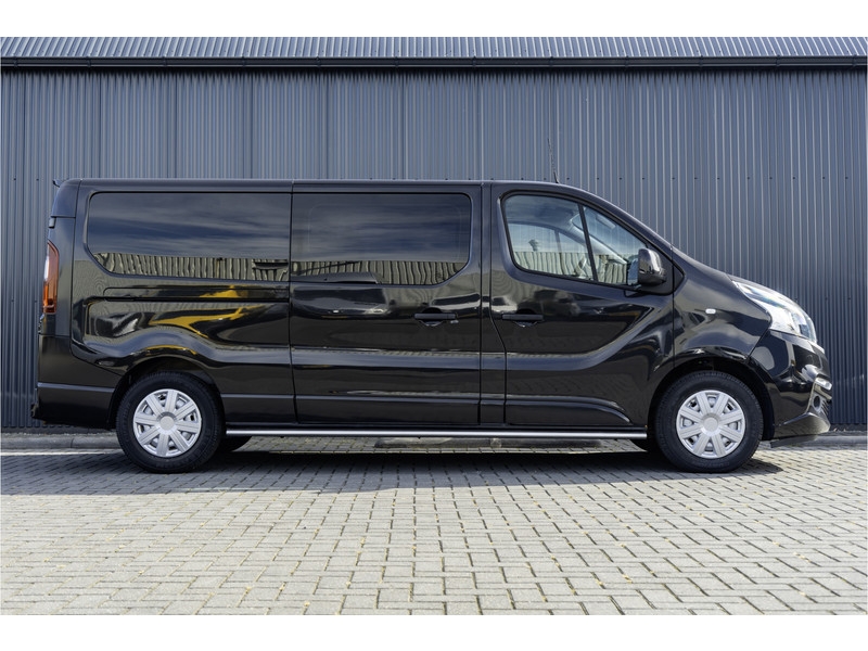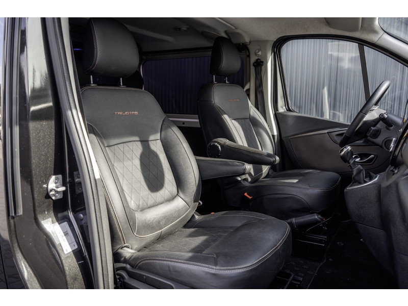 Lease v.a. €365,- per maand. NAP: Logisch. Bandenprofiel: Voor 7,3 mm en Achter 7 mm. Aantal sleutels: 2. Deze Fiat Talento MultiJet Dubbele Cabine is een ruime en comfortabele 5-zits bus, uitgerust met meer dan wat je nodig hebt. Hij beschikt over een achteruitrijcamera, navigatie, parkeersensoren, cruise control en airconditioning, waardoor elke rit een stuk makkelijker en aangenamer wordt. Het interieur straalt luxe uit met lederen stoelen, stuur en pook, stoelverwarming, een multifunctioneel stuur, DAB radio en keyless start. Aan de buitenkant zorgen de in kleur gespoten bumpers en spiegels, sidebars en een spoiler voor een moderne uitstraling. Kortom: een complete, luxe en nette bedrijfswagen die je meteen vertrouwen geeft op de weg. Meer informatie: Modelreeks: okt. 2019 - dec. 2021